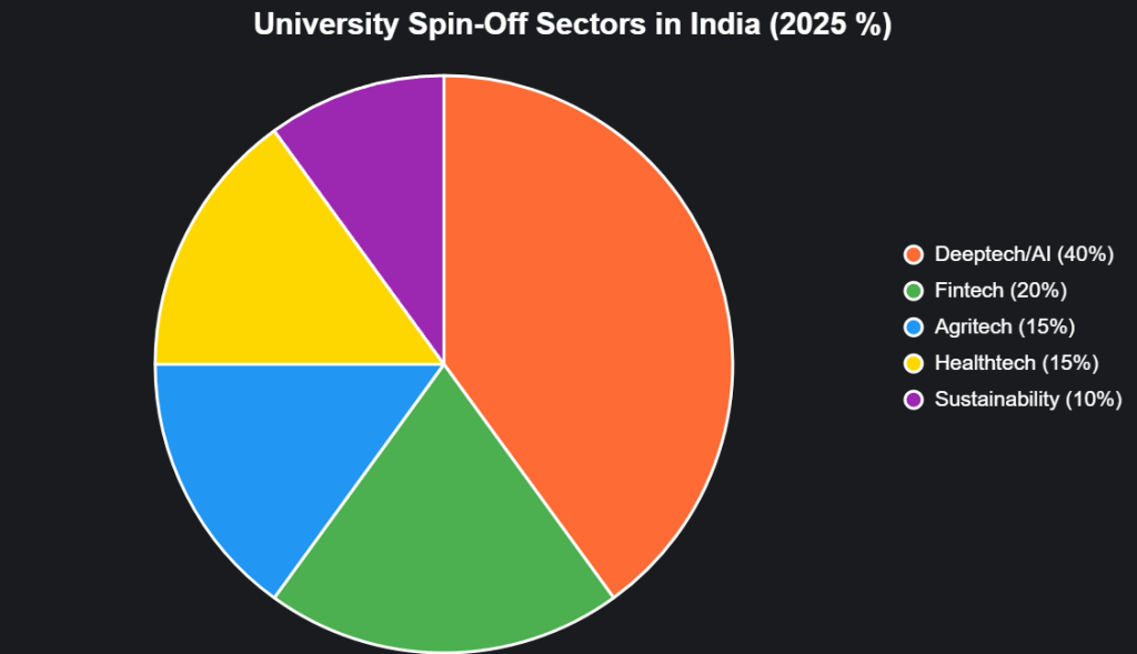 Source: F6S, ResearchGate. IITs/IIMs drive 40% deeptech spin-offs.
